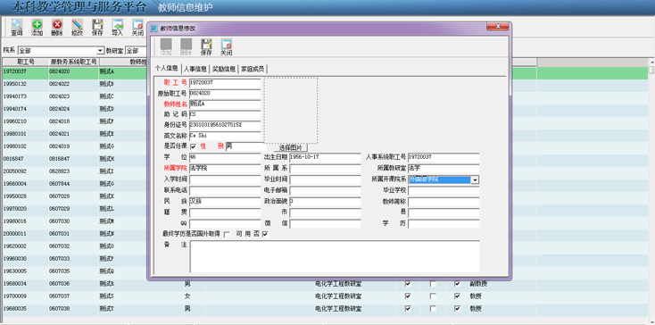 教师信息管理系统用于管理维护教师的基础信息。系统改变了传统纸质档案保管利用的历史,所有历史档案材料通过数字化挂接由计算机管理利用,方便系统管理员的权限设置。