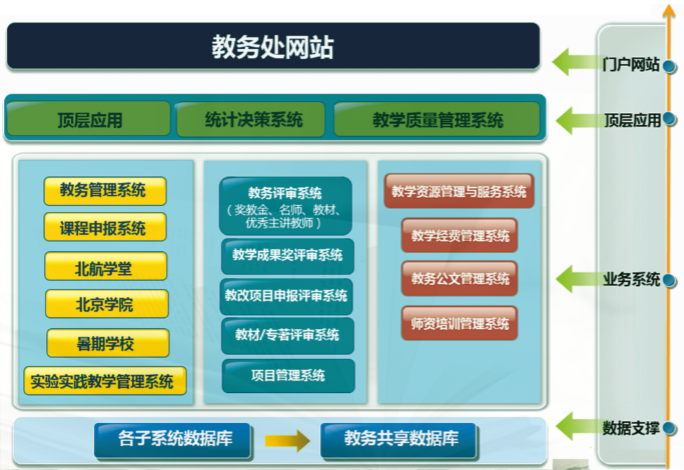 教务处网站;统计决策系统;课程质量管理系统;顶层应用;
