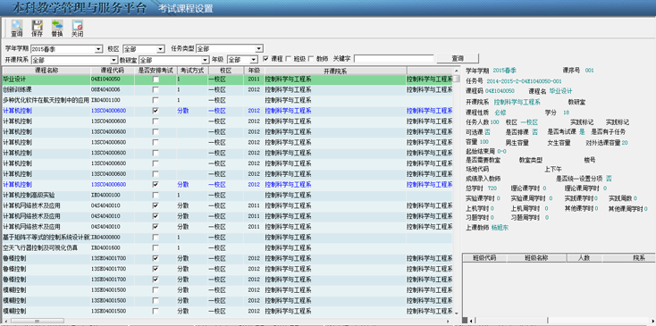 根据教学计划对各个专业的考试课程、时间、地点、试卷和监考教师等相关方面进行合理安排;教师(任课教师、监考教师)和学生可以通过考务中安排的结果查询考试安排。
