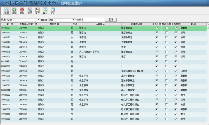 教师信息维护、教师密码维护、班主任及辅导员的安排与查询。